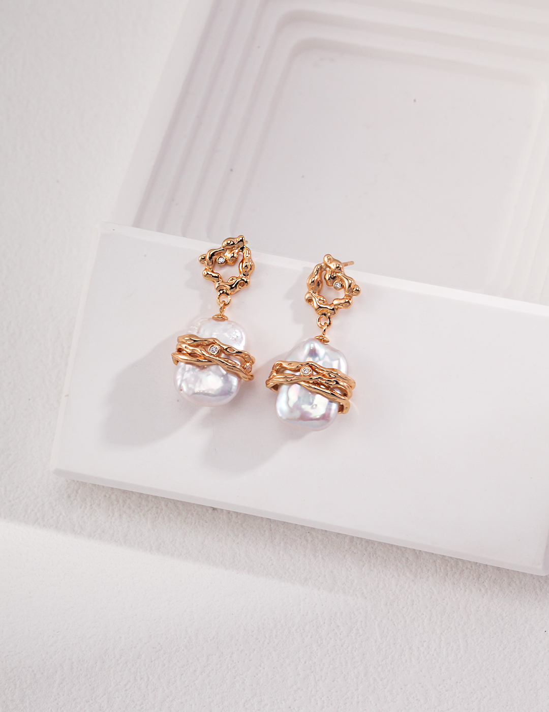 Designed for effortless elegance, the Lustre Pearl Earrings feature natural pearls embraced by organic gold-plated silver frames. The sculptural fluidity of the design enhances their sophistication, making them a perfect standalone statement or a harmonious match with the Lustre Pearl Necklace. Inspired by nature’s harmony, these earrings exude a soft glow, embodying timeless charm with a modern twist.