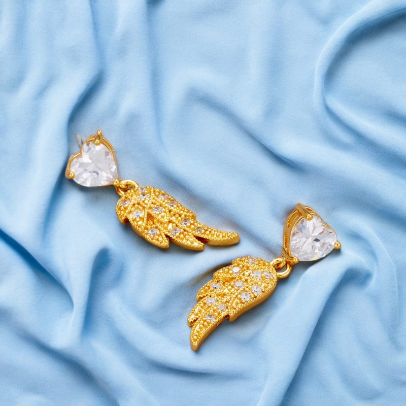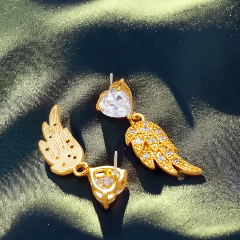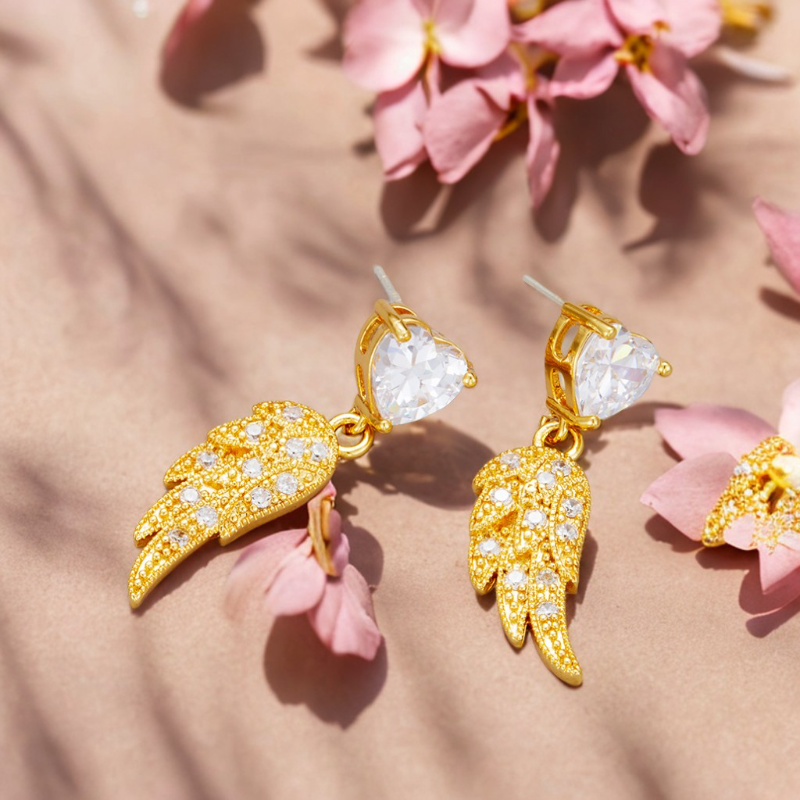 Guardian Spark Earrings aren’t just a shimmer of beauty—they’re a quiet promise of presence. ✨ From the moment you clasp them on, the interplay between the heart-cut crystal and the golden wing ignites something tender but unyielding: a feeling that you’re seen, held, and softly shielded.
