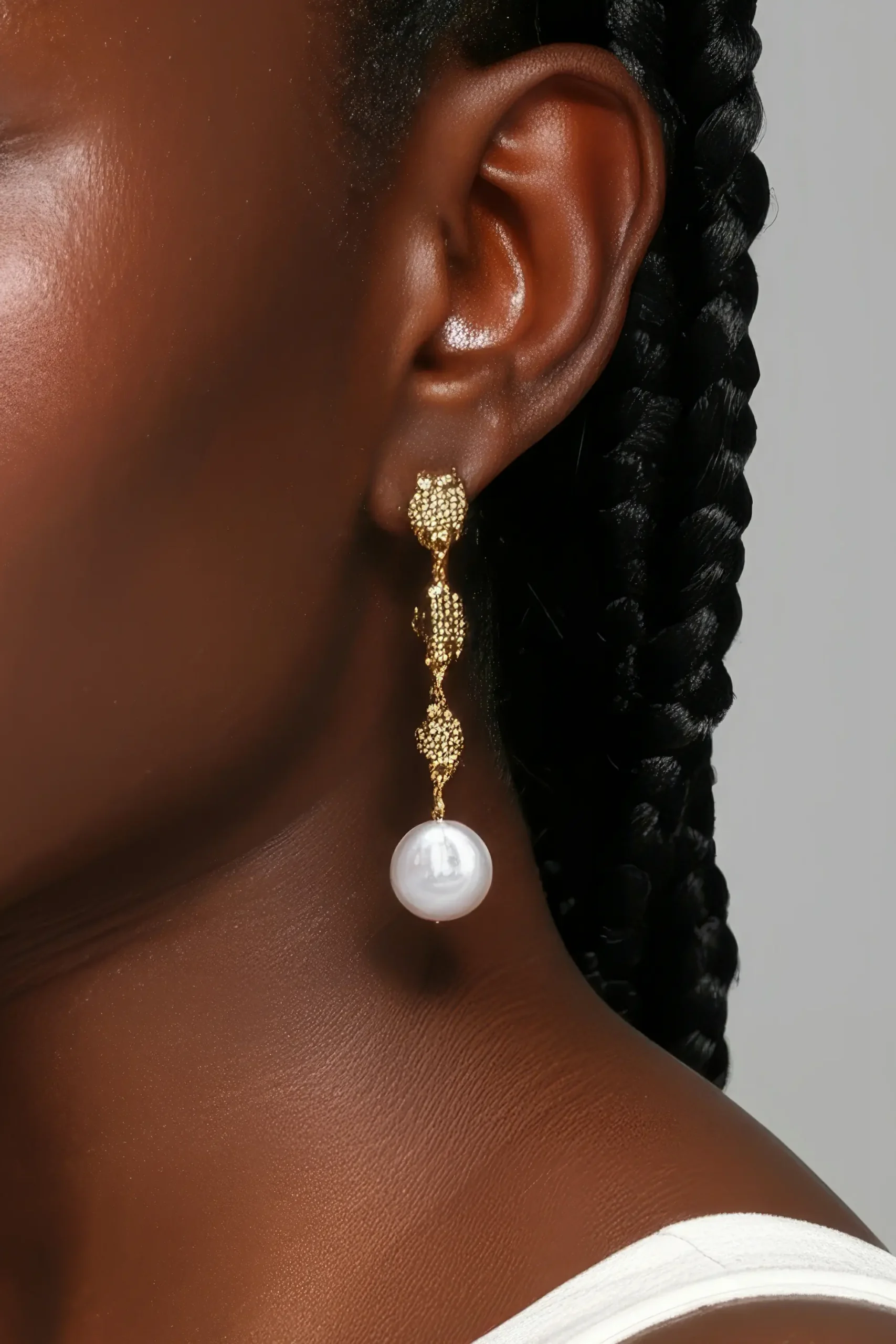• 🎀 Let them catch the light beside tucked-back hair or slick buns.