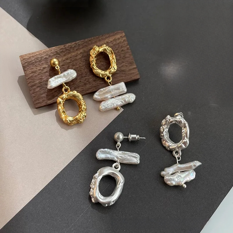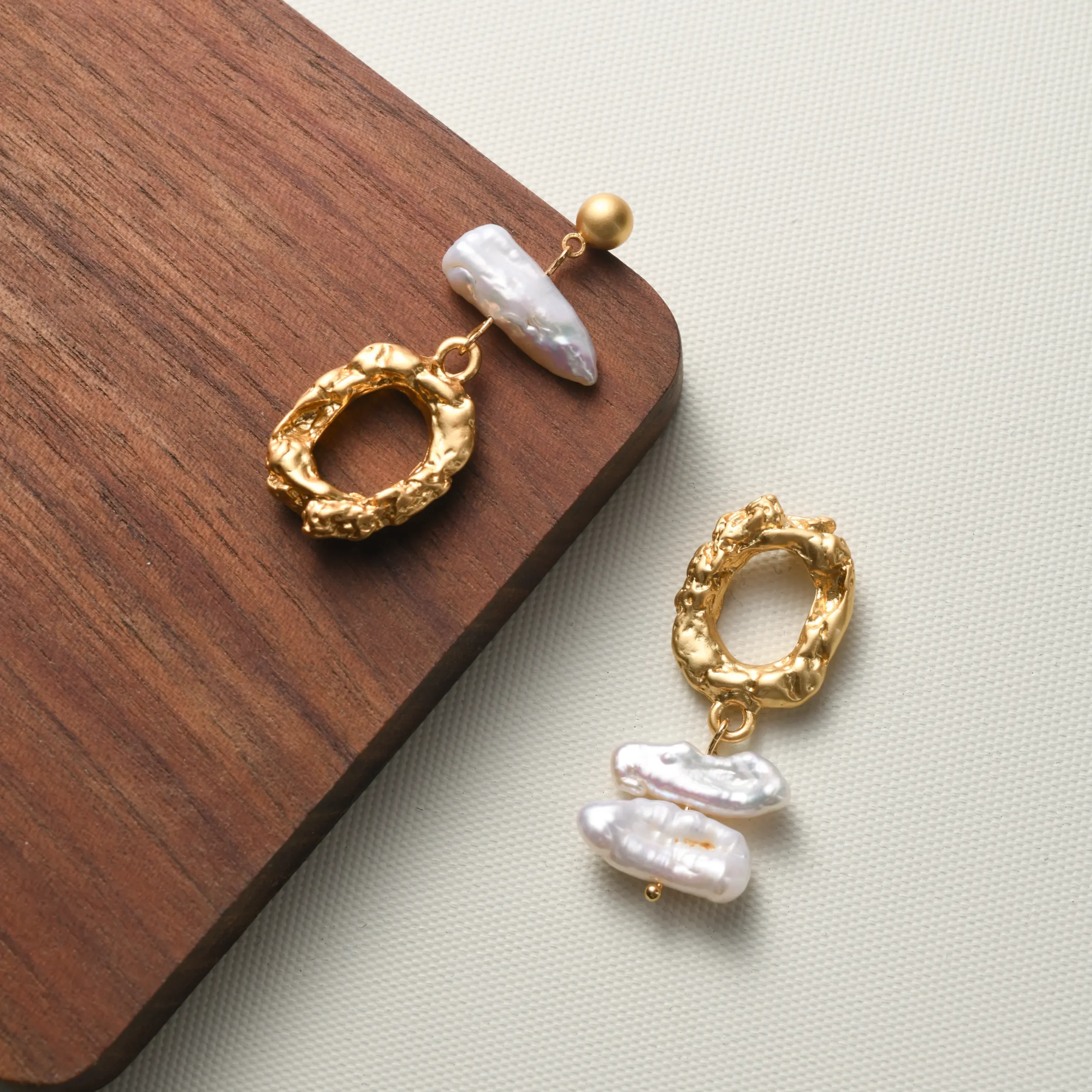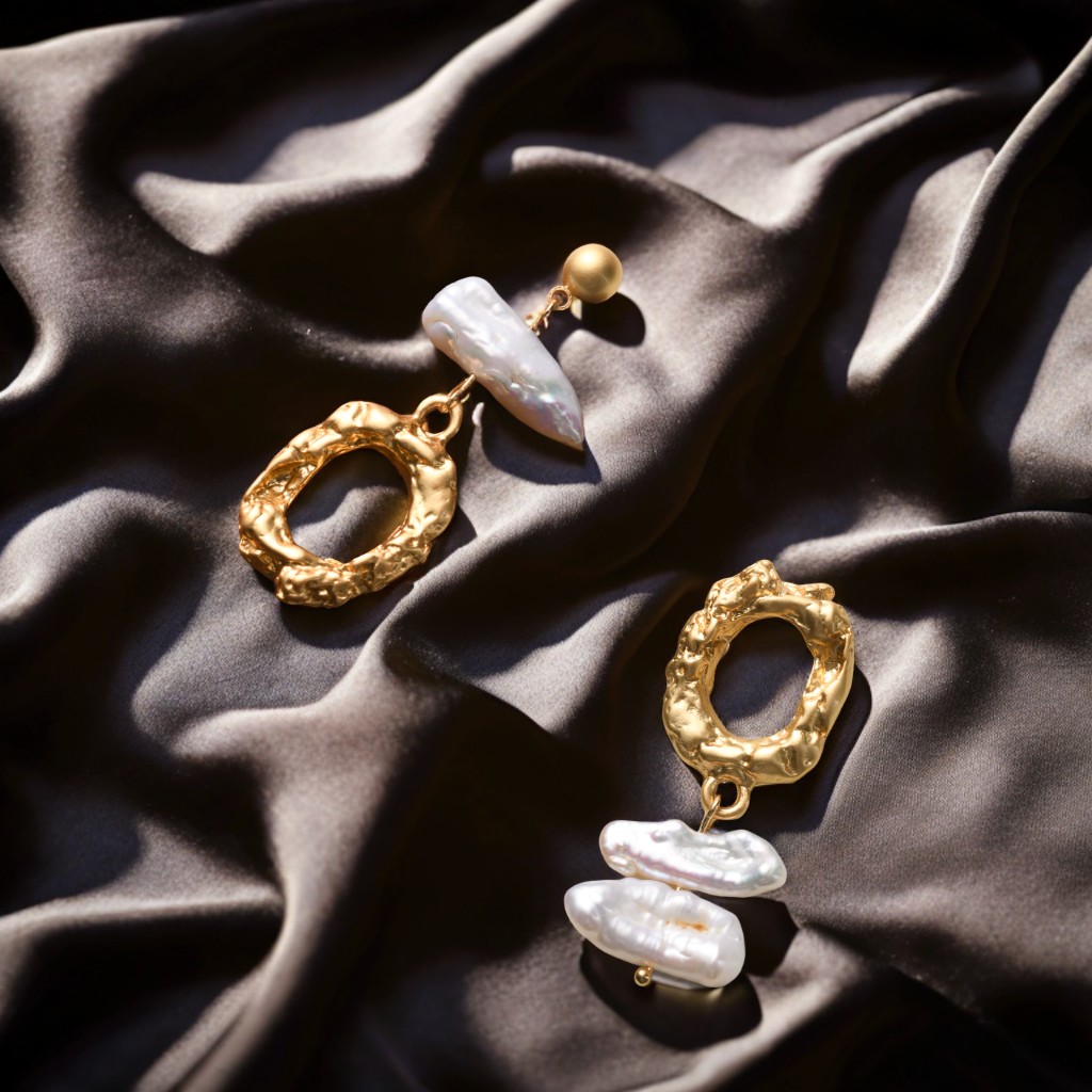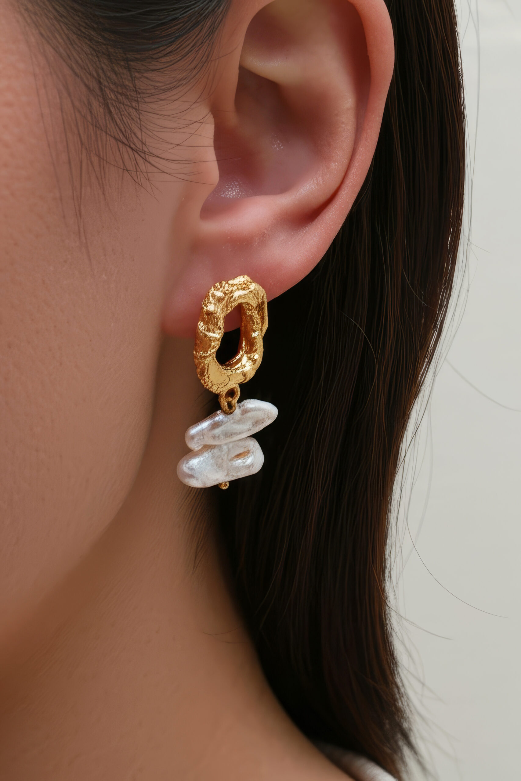 🌟 Meet Sculpted Muse — not just earrings, but an ode to the woman who inspires without trying. One curve longer, one pearl more wild, this pair isn’t about matching—it’s about meaning. The hand-textured gold ripples like cast bronze, while baroque pearls sit imperfectly perfect—an homage to artistry, independence, and feminine duality.